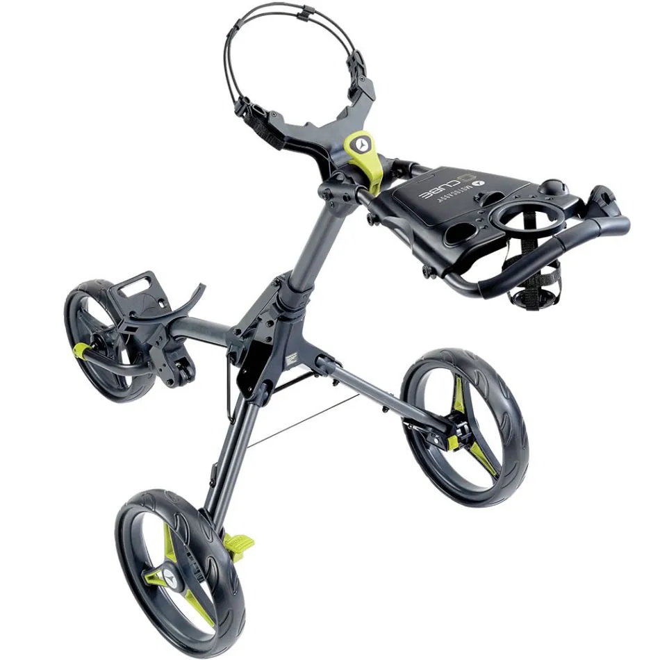 A supremely compact push trolley that is easily folded up and down; designed to be ergonomic, lightweight and friction-free no matter the turf. A foot parking brake ensures maximum control, with a variety of added features such as accessory compartments, bag supports and adjustability; all in an extremely stylish and functional design.